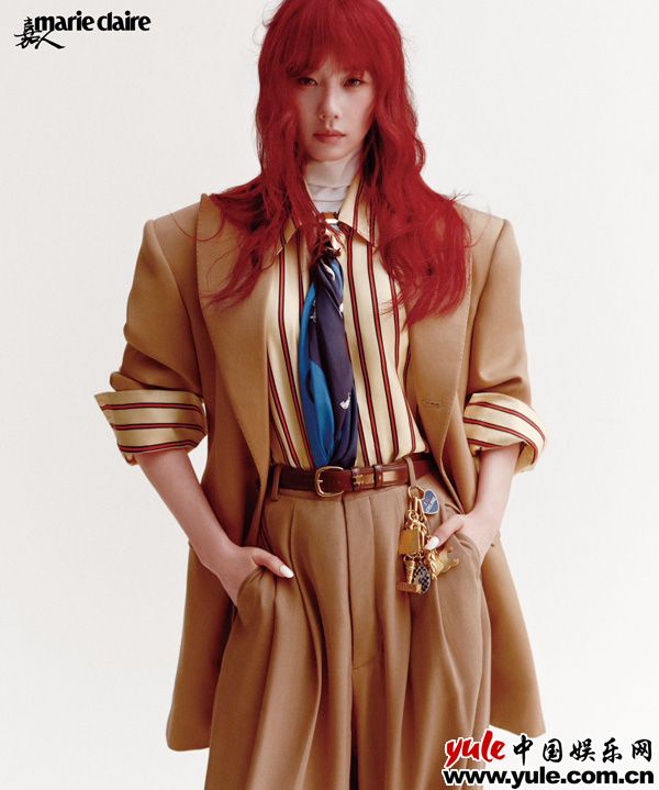 刘诗诗的时尚可塑性不仅体现在日常活动中,在前几天发布的《嘉人》杂志大片中,她以红发时尚女魔头的形象再次刷新了人们对她的认知。